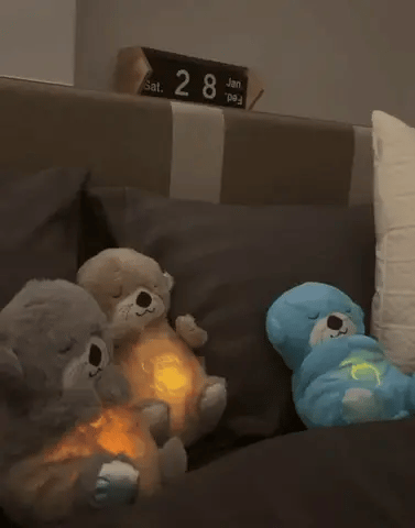 Enciende el peluche presionando el botón principal para iniciar su función de respiración rítmica. Sentirás el movimiento suave, que simula la respiración humana, creando una sensación de calma inmediata